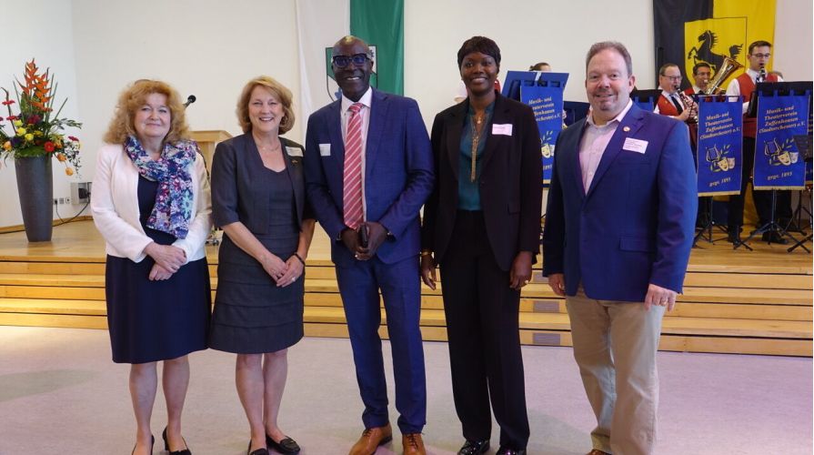V.l.n.r.: Prof. Barabara Traub, Katherine Gwinner, Bezirksvorsteher Saliou Gueye mit Gattin, Deputy Garnison Commander Robert III Gwinner