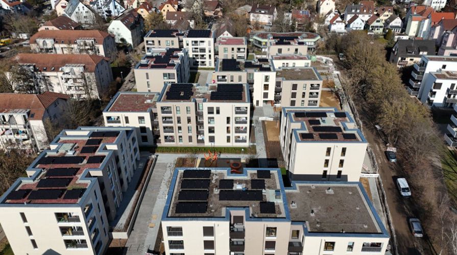 Bild oben: Acht neue Solaranlagen in der Keltersiedlung in Stuttgart-Zuffenhausen liefern künftig sauberen Strom.