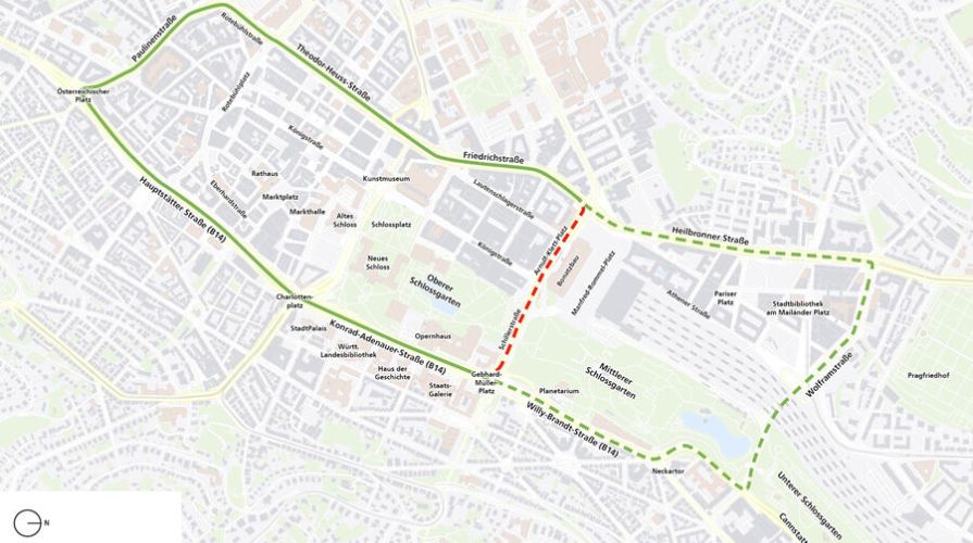 Durch die Verlegung des City-Rings eröffnen sich zahlreiche Möglichkeiten zur Umgestaltung und Aufwertung der neugewonnenen Flächen. Ein Ideenwettbewerb soll im nächsten Jahr stattfinden, um Gestaltungsmöglichkeiten für die Flächen zu konkretisieren und um einen Vorschlag für die Umgestaltung des Arnulf-Klett-Platzes und der Schillerstraße zu erhalten.