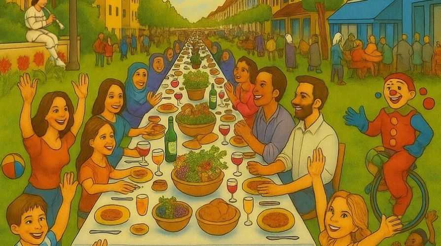 Zentrales Symbol des Tages ist eine etwa 40 Meter lange Tisch-Tafel, die in der Mitte der Unterländerstraße den ganzen Tag aufgebaut ist. Sie soll ein Ort der Begegnung, des Austauschs und Gesprächs sein.