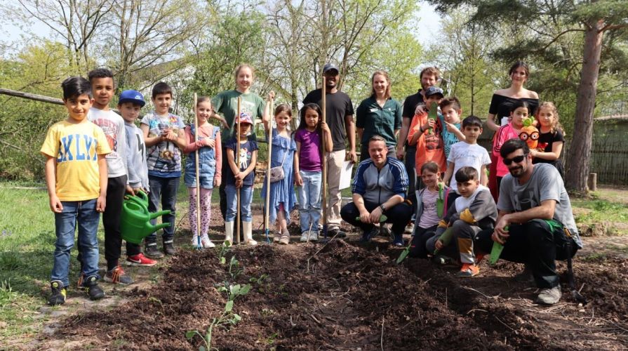 In dem ganzjährig angelegten Bildungsprogramm „Gemüse-Ackerdemie“ des Vereins Acker e. V. bauen Schulkinder gemeinsam mit ihren Lehrerinnen und Lehrern sowie den pädagogischen Betreuern der Uhlandschule ihr eigenes Gemüse an und kümmern sich um das, was da wächst und gedeiht. Die ganze Saison über sollen die Schüler nun in wöchentlichen Ackerstunden ihre Setzlinge pflegen. Der Gemüseacker wird so zum Lernort, um auch mehr über gesunde Ernährung und ökologische Landwirtschaft zu erfahren: „Im Herbst machen wir dann ein Erntefest“, sagt Schülerhaus-Teamleiter Stefan Köhler. Vermutlich werde man dann auch in der Koch- und Back-AG der Uhlandschule das eine oder andere Gericht mit dem Gemüse aus dem eigenen Garten zaubern. Finanziell unterstützt wird das Programm durch Sponsoren. Die Projektkoordination vor Ort lief über die Uhlandschule, die Caritas, das Schulverwaltungsamt und das Sozialunternehmen Acker.