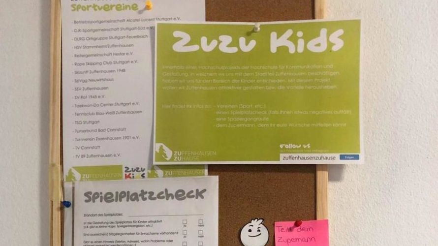Seit dem 10.01 können Sie im Bezirksrathaus Wünsche und Verbesserungsvorschläge bei unserem Zupermann äußern. Zudem können Sie an unserer Pinnwand den Vordruck Spielplatzcheck abholen und sich über Vereine in Zuffenhausen schlau machen.