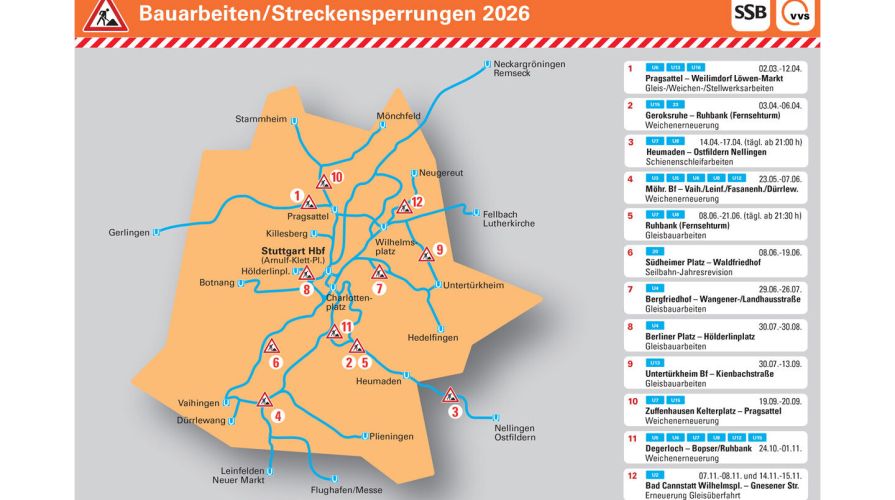 Die Stuttgarter Straßenbahnen AG wird auch im noch jungen Jahr 2026 weiter daran arbeiten, ihre Infrastruktur in gutem Zustand zu halten und damit für die Zukunft gerüstet zu sein. Die nötigen Bauarbeiten am Schienennetz sind die Voraussetzung dafür, dass die Stadtbahnen auch in den kommenden Jahren zuverlässig die Bürgerinnen und Bürger mobil halten.