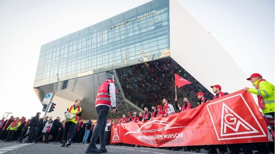 (Foto oben: Streik vor dem Porsche-Museum. Bild: Julian Rettig)
